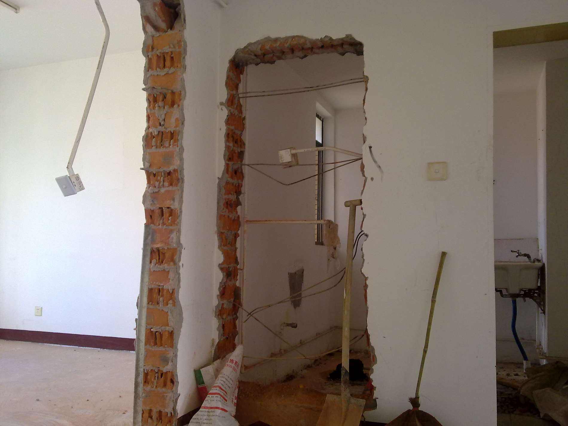 敲門上方的墻壁,用水泥和鋼澆鑄門梁。然后敲下面的門。這是安全的。如果是厚重的墻,最好分兩個半邊半邊倒。這是安全的。
