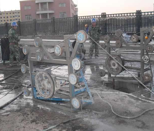 2.首先,需要用繩子將切割的部分捆綁起來。然后用金剛石工具在指定位置高速切割鋼筋混凝土,可以把混凝土分成兩半。而且全程無損傷。沒有震動(dòng),這種切割方式很有效。這就需要使用起重設(shè)備,聯(lián)合起來完成切除任務(wù)。