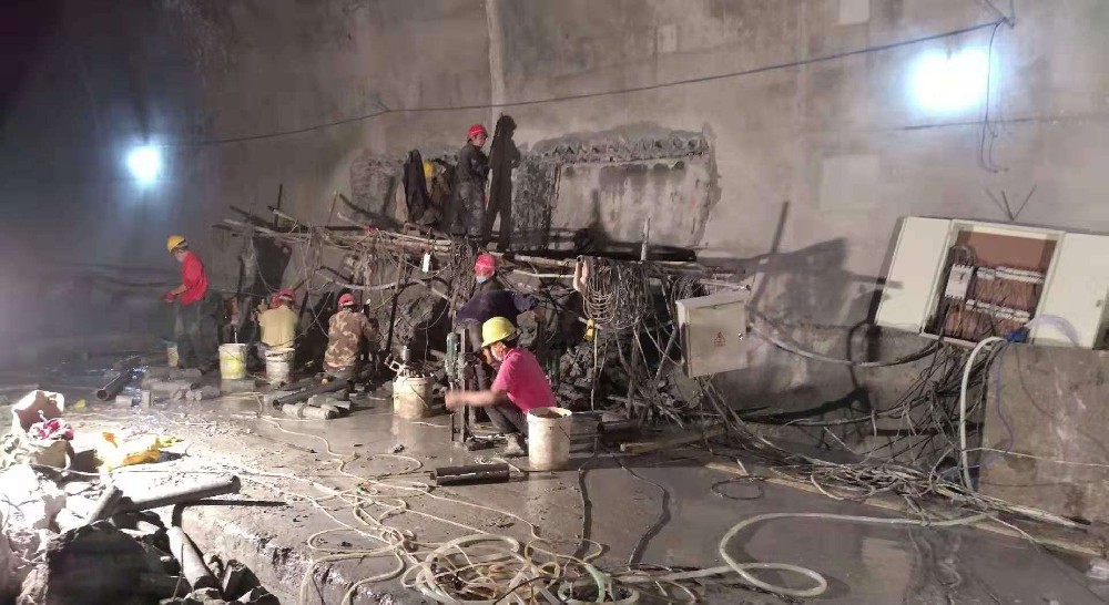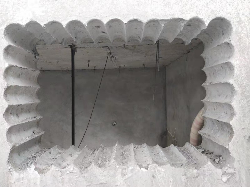 如果沒有爆破條件,可以用斷跟后整體拉下來的方法。也就是說,在混凝土墻底部兩側(cè)的根部拔出一個凹槽,露出鋼筋后,切斷鋼筋。然后用大錘將鑿子放入凹槽中,將混凝土墻頂部斷裂。然后把繩子掛在墻的頂部,然后把它拉下來。這比人工硬鑿要快得多。