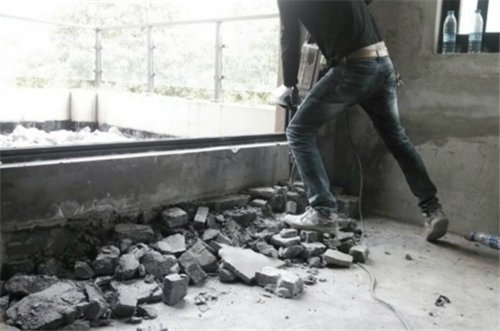 用平頭電鎬去瓷磚,不要讓工人揮舞大錘。大錘可能更快,但可能會對地板造成損傷。這個工作還是交給工人吧,真的很累,也很難做。需要注意的是,工人在拆除地磚時,要把瓷磚下面的水泥層敲掉,打在原建筑地面上。