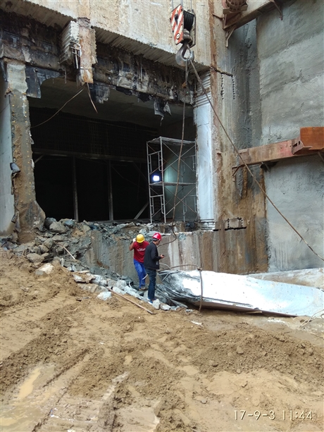 原鋼筋混凝土結構采用金剛石圓盤鋸片切割,原混凝土全部拆除,分段切割