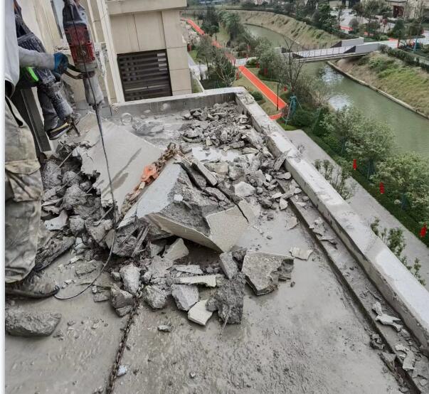 在切割拆除過程中**考慮結構的穩定性及安全性,混凝土結構切割施工前,梁板底等部位應采取臨時支撐措施,關鍵部位需對原結構進行加固,待加固構件達到設計要求后方可進行后續混凝土切割工作。